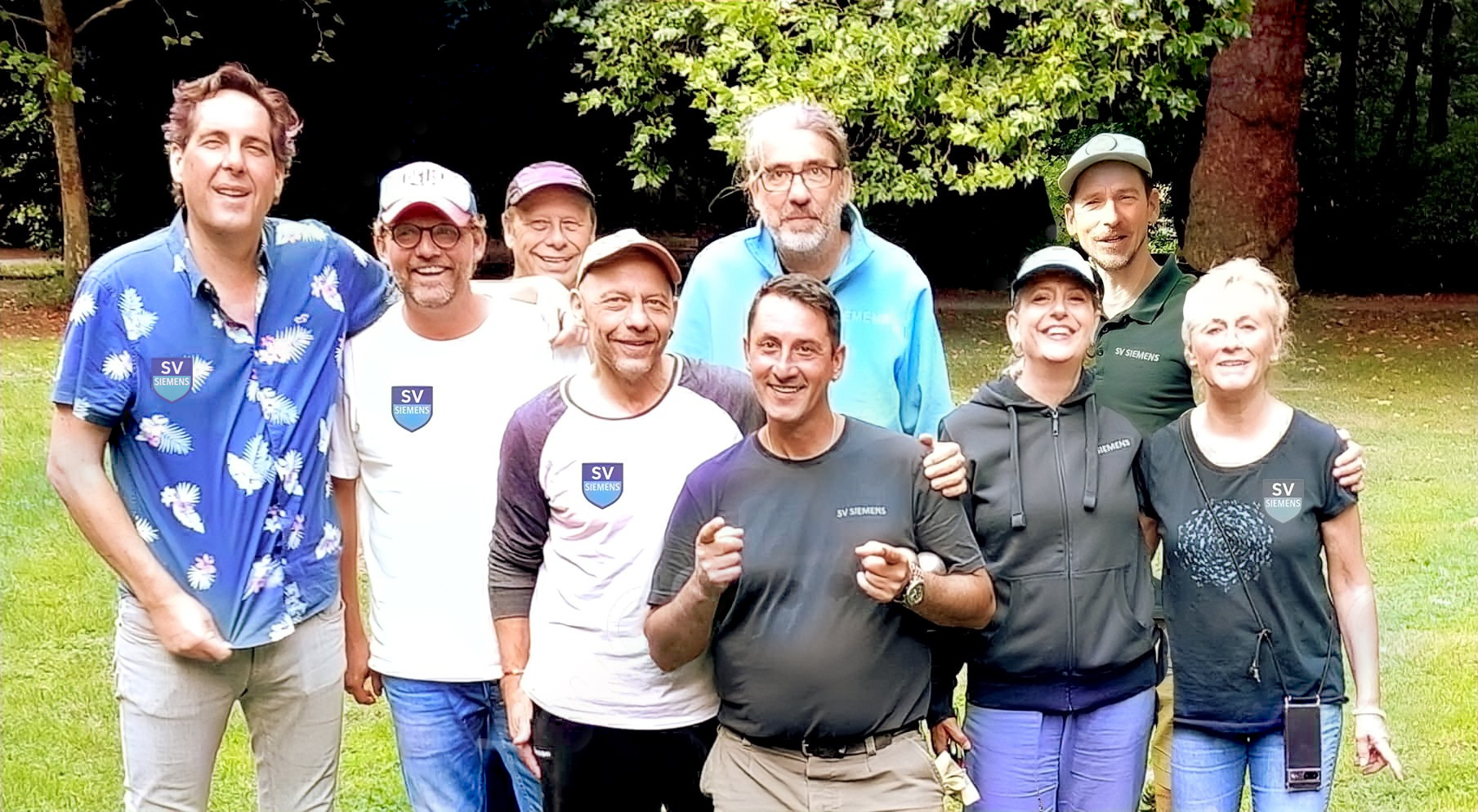 oben v.l.n.r.: Francesco »Franco« Mannarino, Elke Stammen, Rolf Stammen, Oliver »Olli« Fünderich, Gabriel Bogatz, Sieglinde »Siggi« Strehling, Sebastian »Sebi« Knümann, Angelika Schmidt, Jörg Schmidt und Jürgen »Jü« Trestik. [nicht im Bild: Célina Ruibal Gonzaléz]